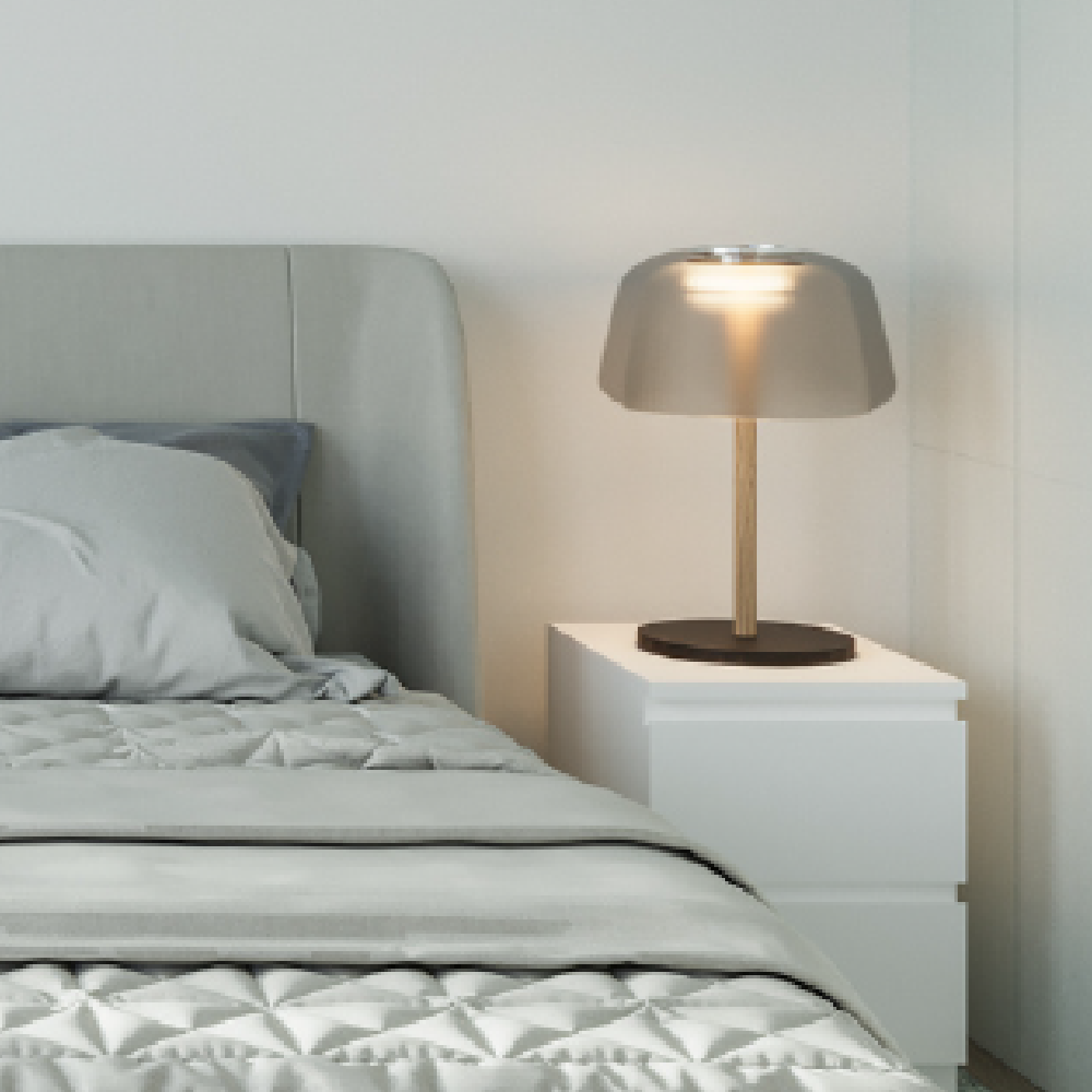 The bedroom boasts a refined and luxurious ambiance with large windows that allow natural light to flood the space.